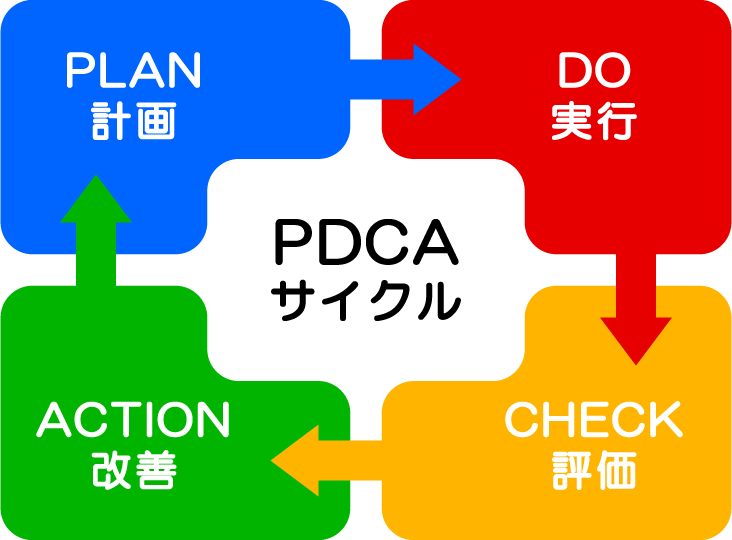 Plan(計画)→ Do(実行)→ Check(確認)→ Action(改善)を繰り返すことで、